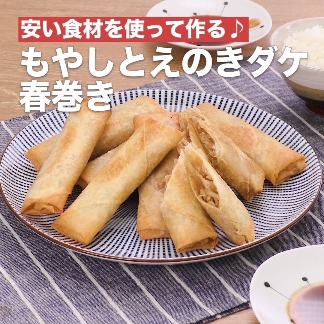 ⑥<安い食材を使って作る♪もやしとえのきダケ春巻き>