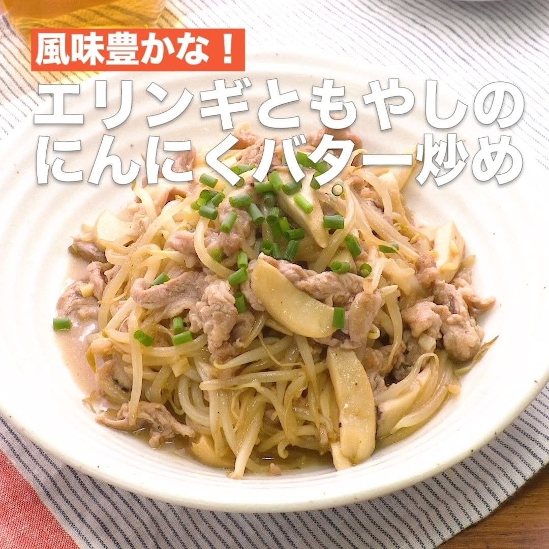 ③<風味豊かな!エリンギともやしのにんにくバター炒め>