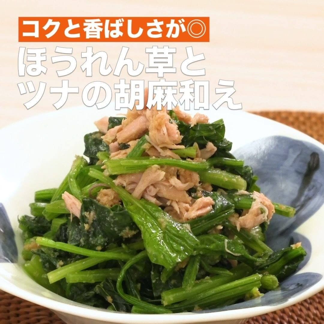 ⑨<コクと香ばしさが◎ほうれん草とツナの胡麻和え>