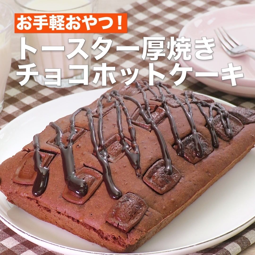 人気の厚焼きホットケーキをココアとチョコでアレンジ!ココアのほろ苦さがアクセントに♪焼き加減が難しい厚焼きホットケーキですが、トースターで作ればきれいに焼き上げることができます。材料も少なく作れるので今日のおやつにいかがですか?