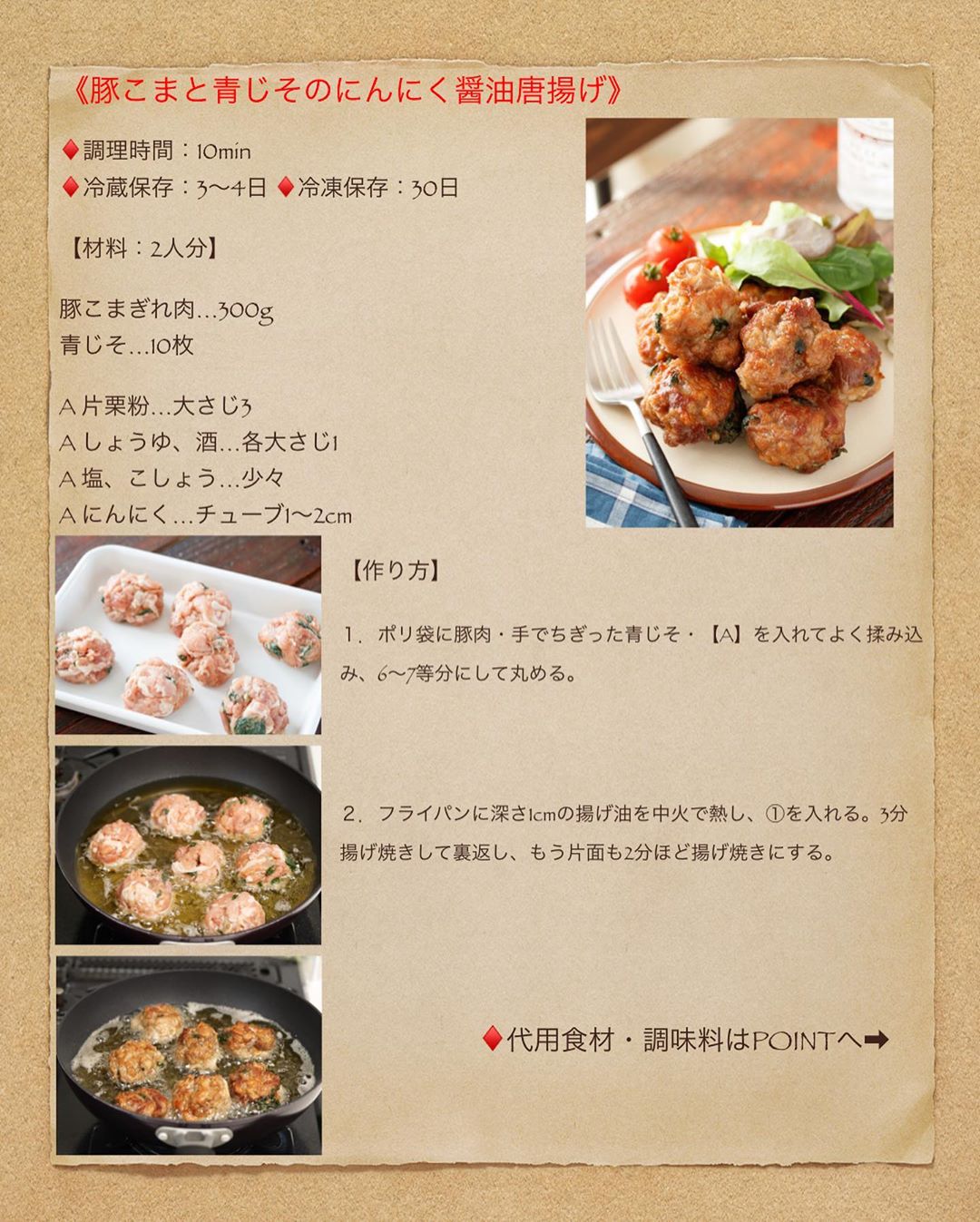 【 #豚こまと青じそのにんにく醤油唐揚げ 】#作り置き #冷凍保存 #お弁当 #包丁不要 #ポリ袋 #献立
