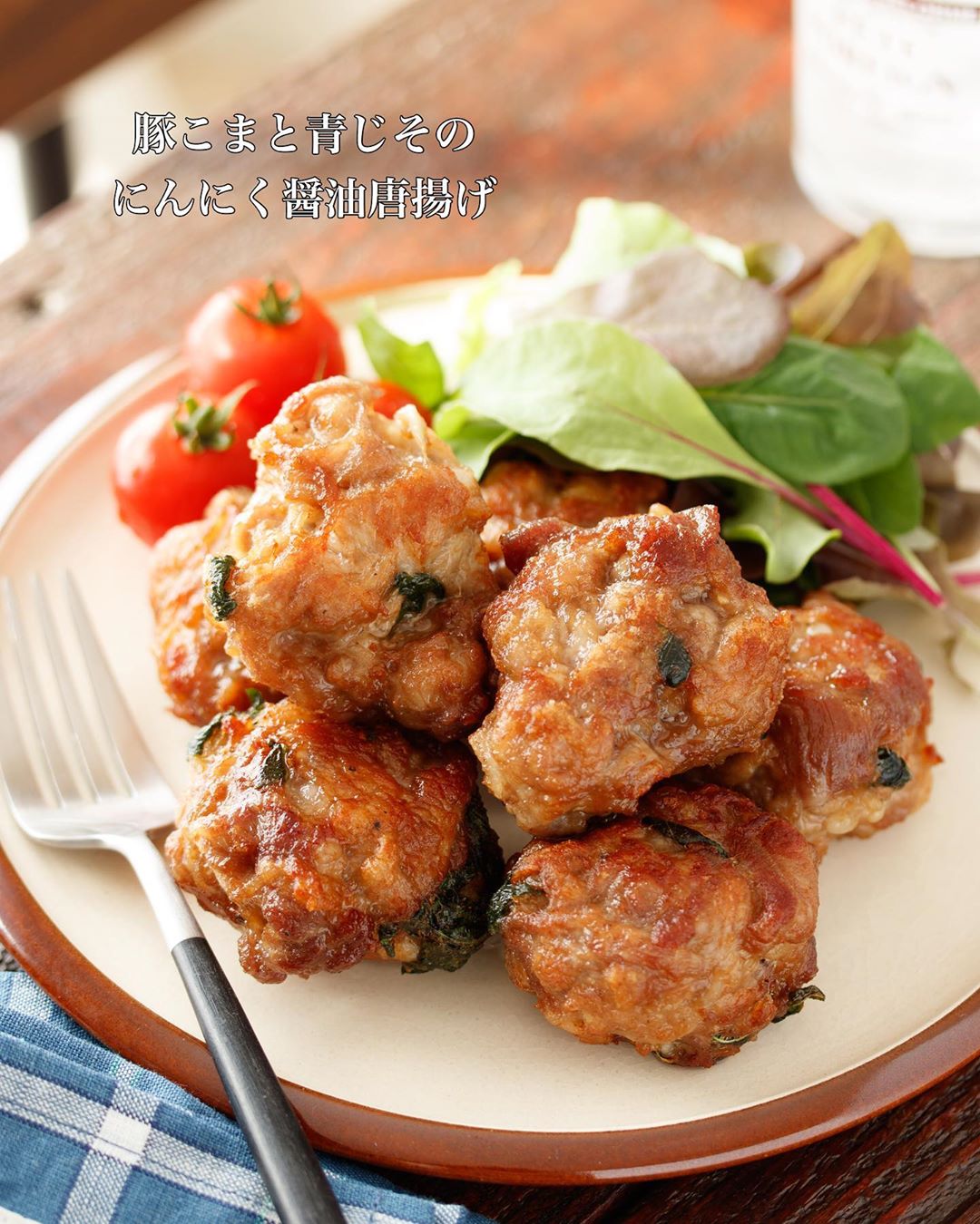 #簡単 #簡単レシピ #レシピ #節約 #時短 #時短レシピ #food #recipe #cooking #料理好きな人と繋がりたい #器好き #器 #写真好き #楽うま #おかず #自分時間 #自分磨き #ライブドアインスタブロガー #豚こま #青じそ #にんにく醤油 #唐揚げ