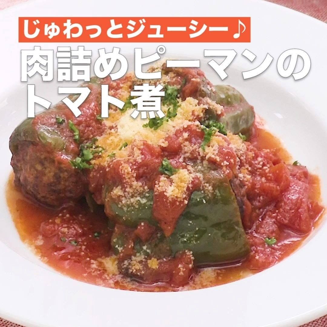 ①<じゅわっとジューシー♪肉詰めピーマンのトマト煮>