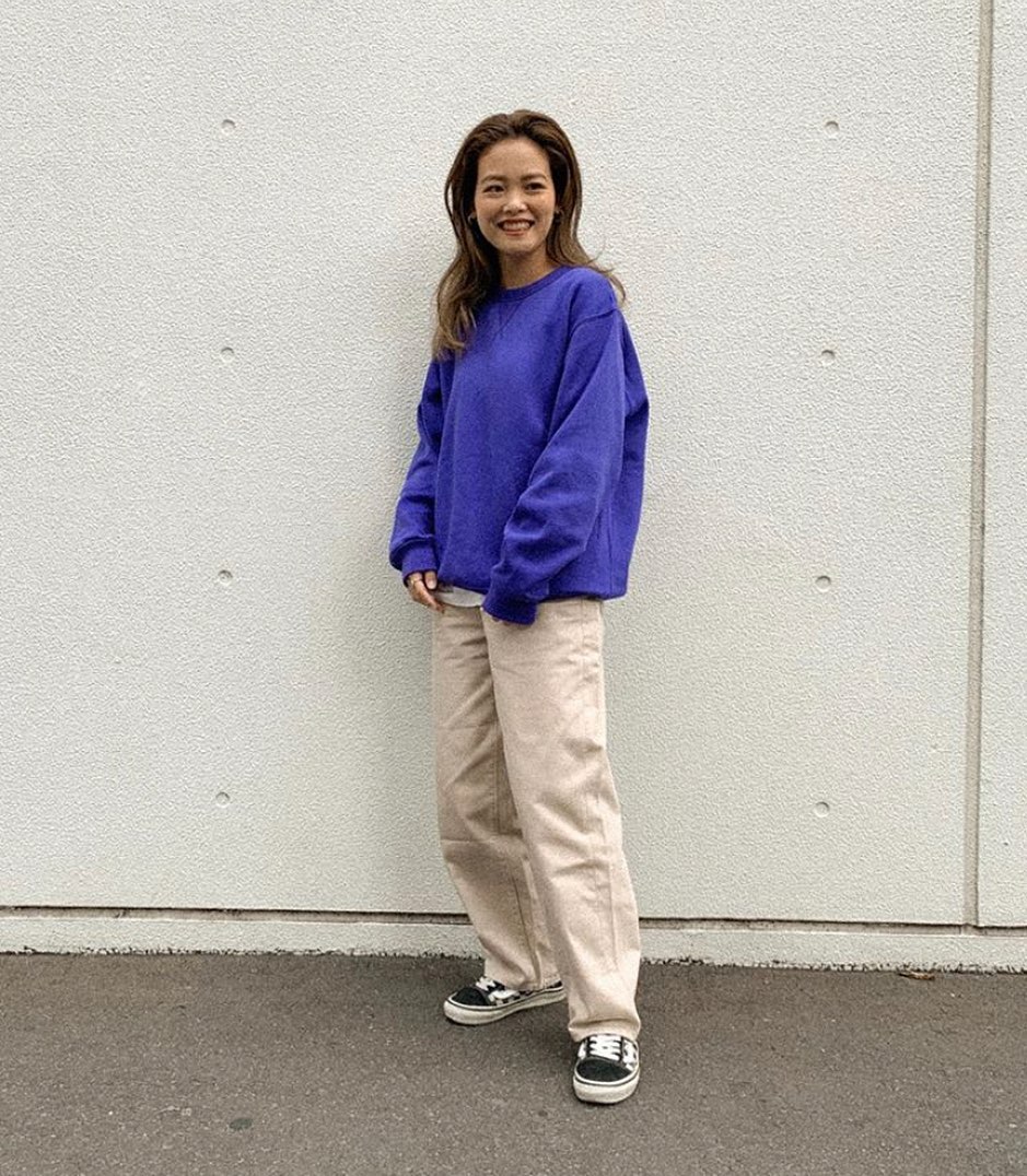 カラーが冴える、シンプルスウェット✨秋だって、元気なカラーで可愛く決めたい👍ぴったりなブルーが、とっても可愛いですね😘ちょっとダボっとが、また良い感じ👌サイズ感違い、カラー違いで、お洒落を楽しめるアイテムですね🙌