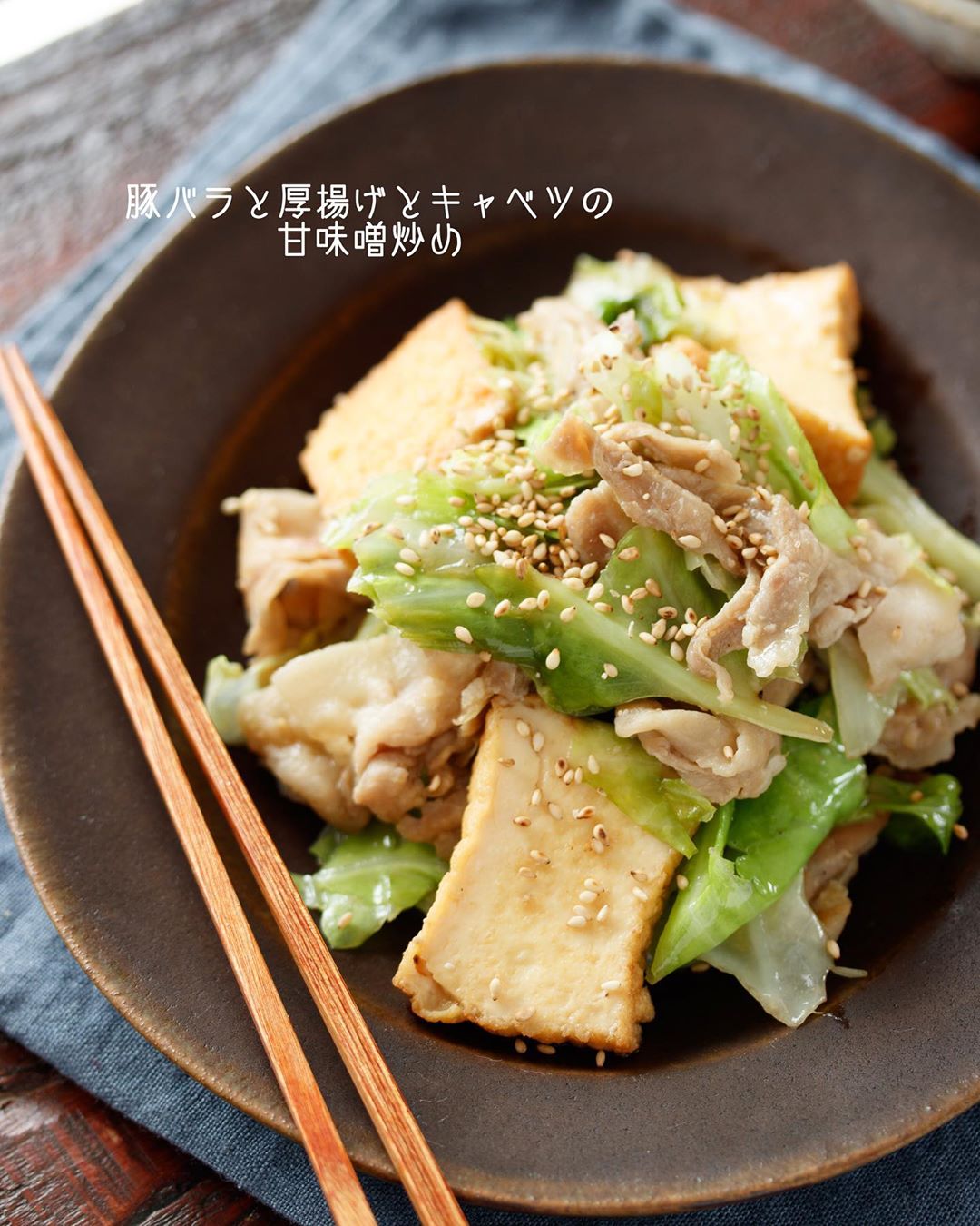 【 #豚バラと厚揚げとキャベツの甘味噌炒め 】#スピードおかず #10分おかず