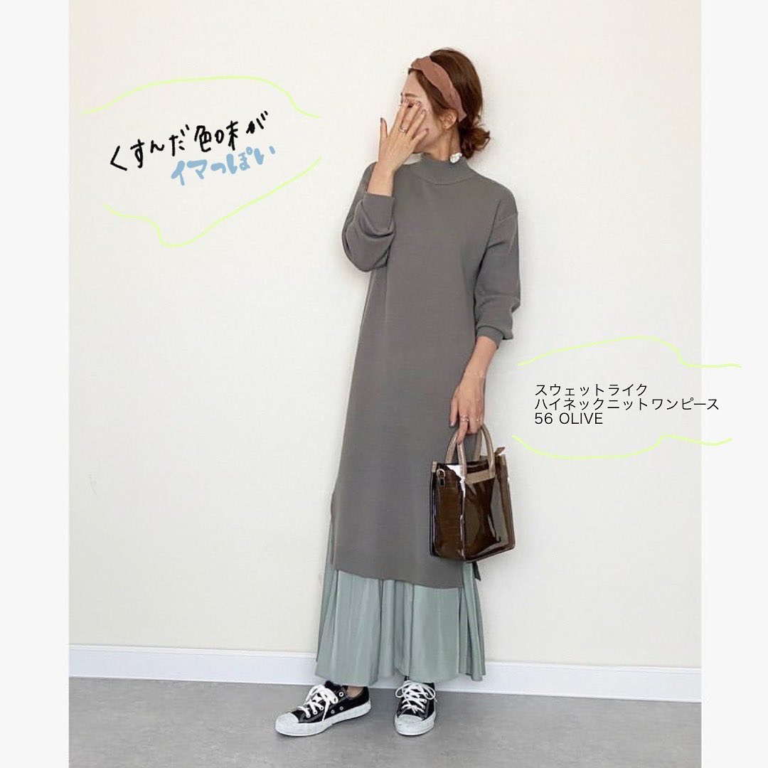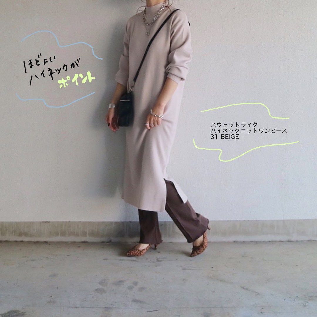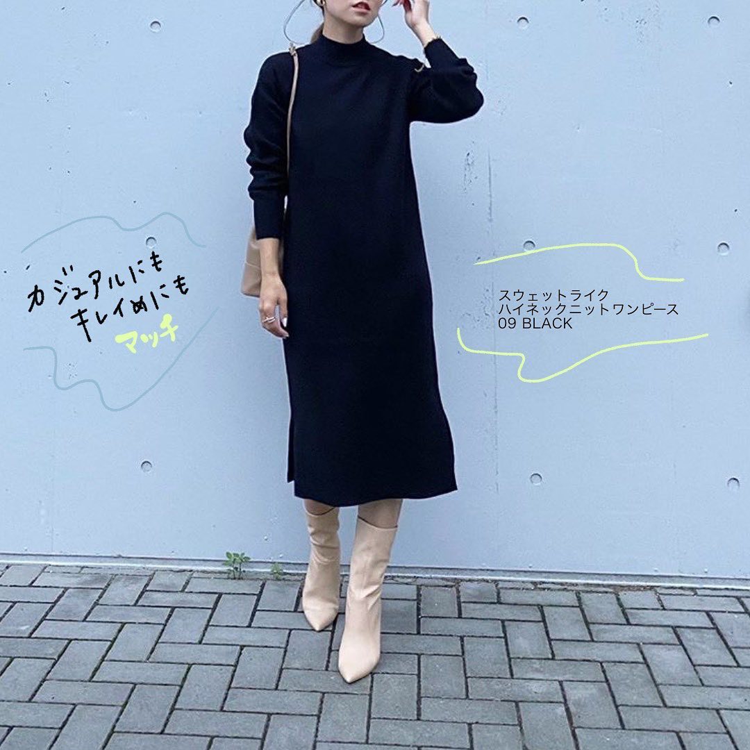 ☑︎スウェットライクハイネックニットワンピース(長袖)