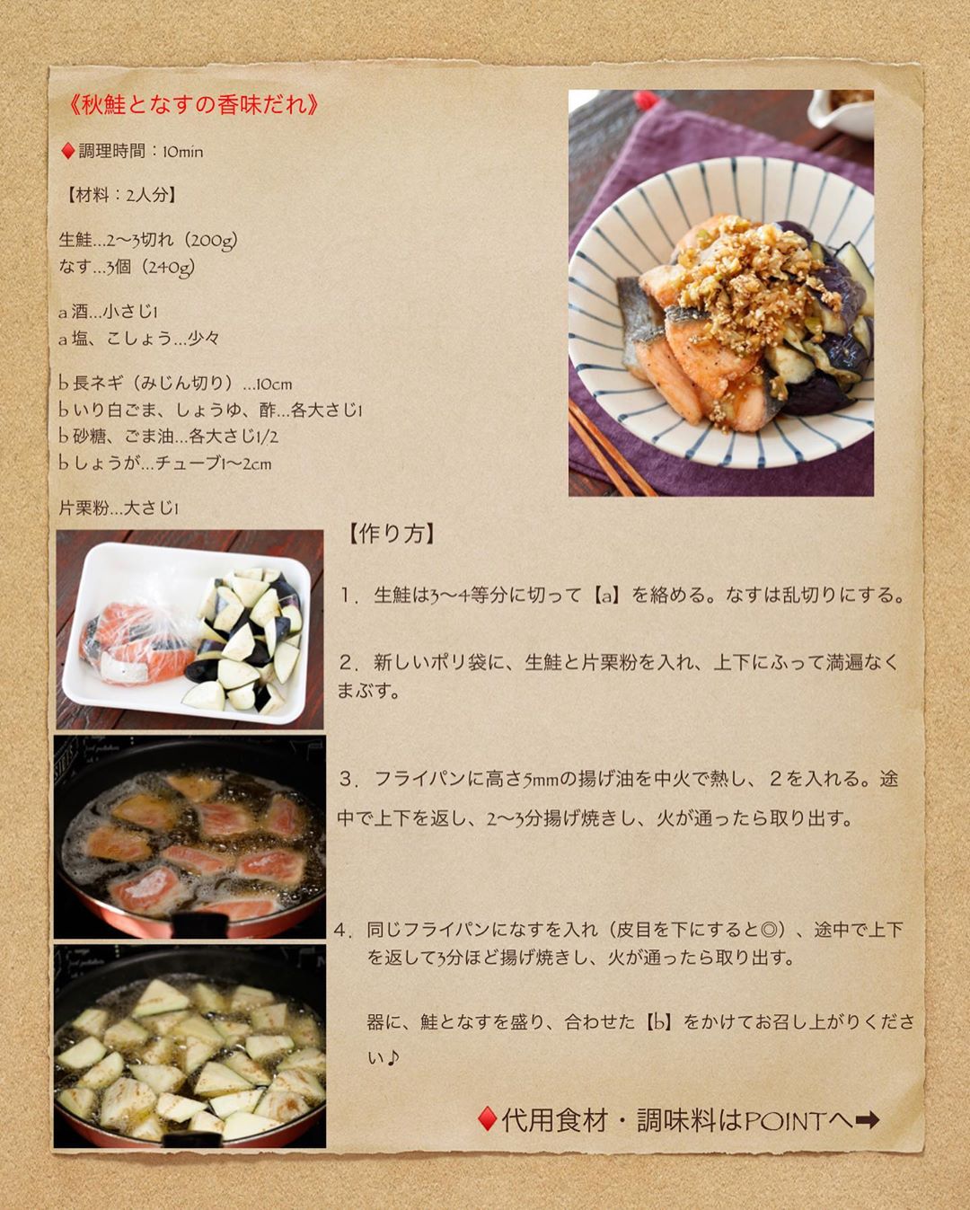 #簡単 #簡単レシピ #レシピ #節約 #時短 #時短レシピ #料理好きな人と繋がりたい #楽うま #おかず #自分時間 #自分磨き #ライブドアインスタブロガー #鮭 #なす #香味だれ
