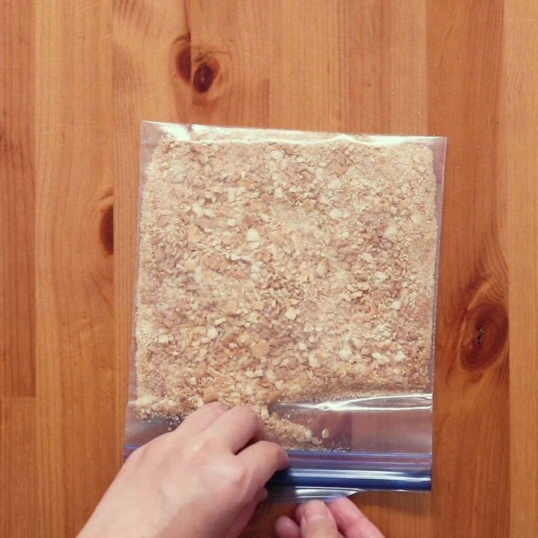 4. クッキングシートをくしゃくしゃにしてから広げ、ココットに敷き流し入れます。