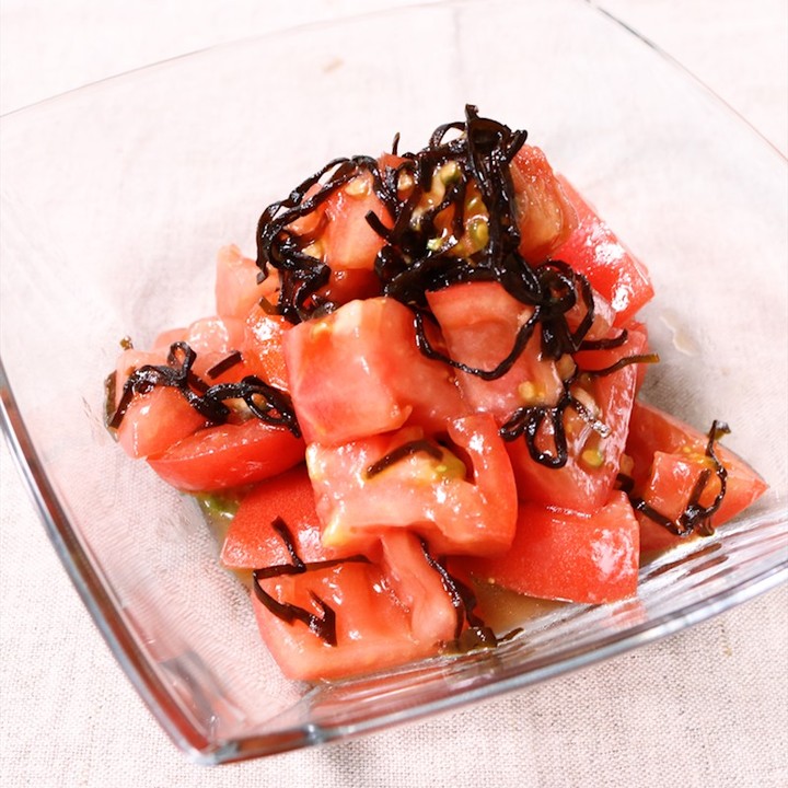 材料も少なく、手間もほとんどかからない、ささっと簡単に出来てしまうトマトのサラダです。味つけは、塩昆布のみですが、ごま油の風味が効いていて、簡単でとてもおいしい一品です。簡単にお作りいただけるのでぜひお試しください。