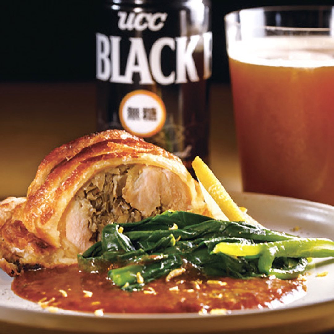 店自慢の「鶏肉とキノコのパイ包み焼き」との相性も抜群。デミグラスソースが深い旨みを添えるひと皿だから、「UCC BLACK無糖」と合わせることによって繊細な風味と香りがより引き立った「クラフトビアブラックボール」に合う。