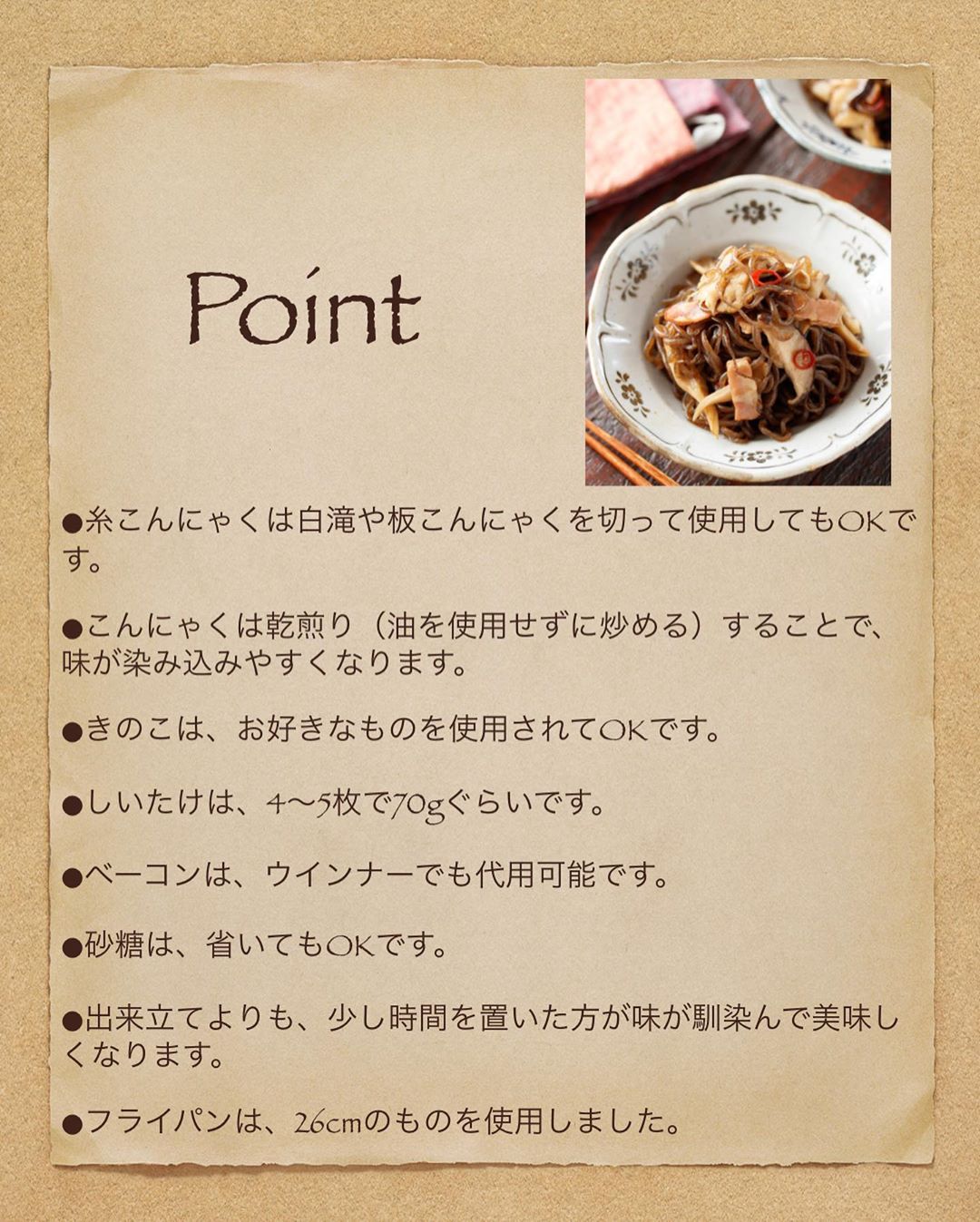 ポイントは、糸こんにゃくの乾煎り✨