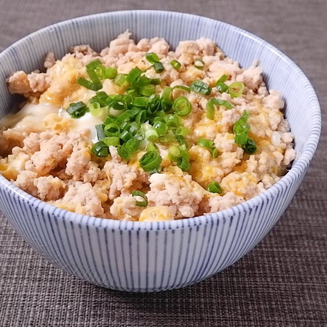 フライパンひとつで簡単にできる、鶏たまご丼のご紹介です。鶏ひき肉は火通りもはやく、包丁を使わずにできるのでお昼ごはんや時間のない時にぴったりですよ。めんつゆだけで手軽にできるので、ぜひ試してみてくださいね。