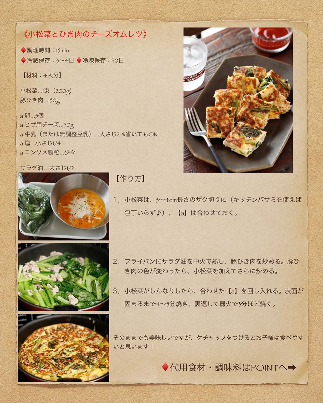 【 #小松菜とひき肉のチーズオムレツ 】#作り置き #お弁当 #冷凍保存 #包丁不要 #おもてなし