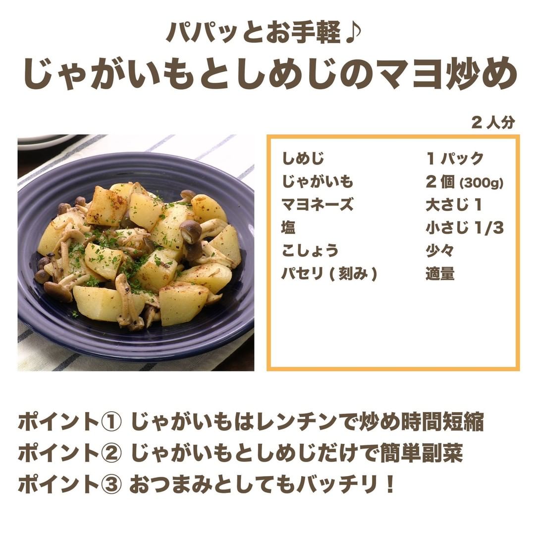 #今日のごはん #献立 #おかず #簡単料理 #時短レシピ #時短料理 #手作りごはん #手作り料理 #キッチングラム #簡単ランチ #おうちご飯 #お家ごはん #じゃがいも #ポテト #しめじ #きのこ
