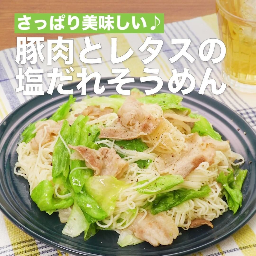 ジューシーな豚肉と塩だれにからんだレタスがたまらない!食べ応えのあるそうめんのアレンジレシピをご紹介します。レタスはシャキシャキのままさっと和えるだけでもよし、お好みでしんなりしみしみになるまで炒めてもよし!お好みの状態に仕上げてください♪