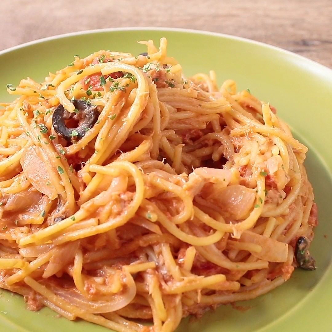 ③『フライパンひとつで ツナのトマトクリームパスタ』