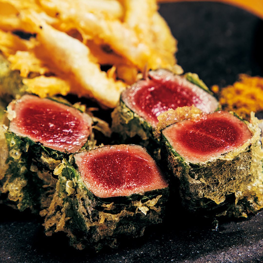 ③「マグロのレア天ぷら」は紫蘇がアクセントに。
