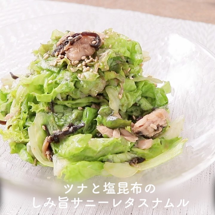 ①『ツナと塩昆布のしみ旨サニーレタスナムル』