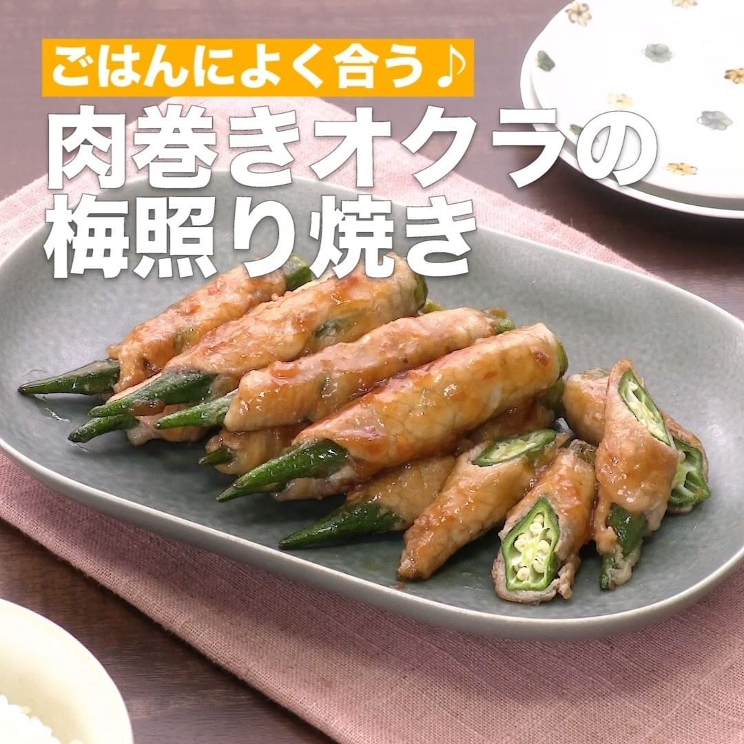 ③<ごはんによく合う♪肉巻きオクラの梅照り焼き>