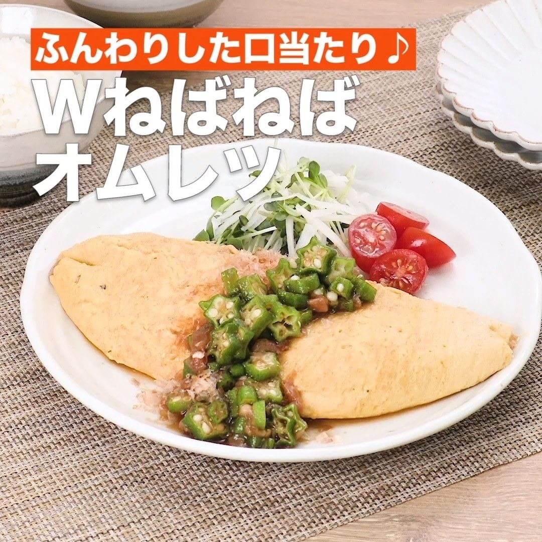 ①<ふんわりした口当たり♪Wねばねばオムレツ>