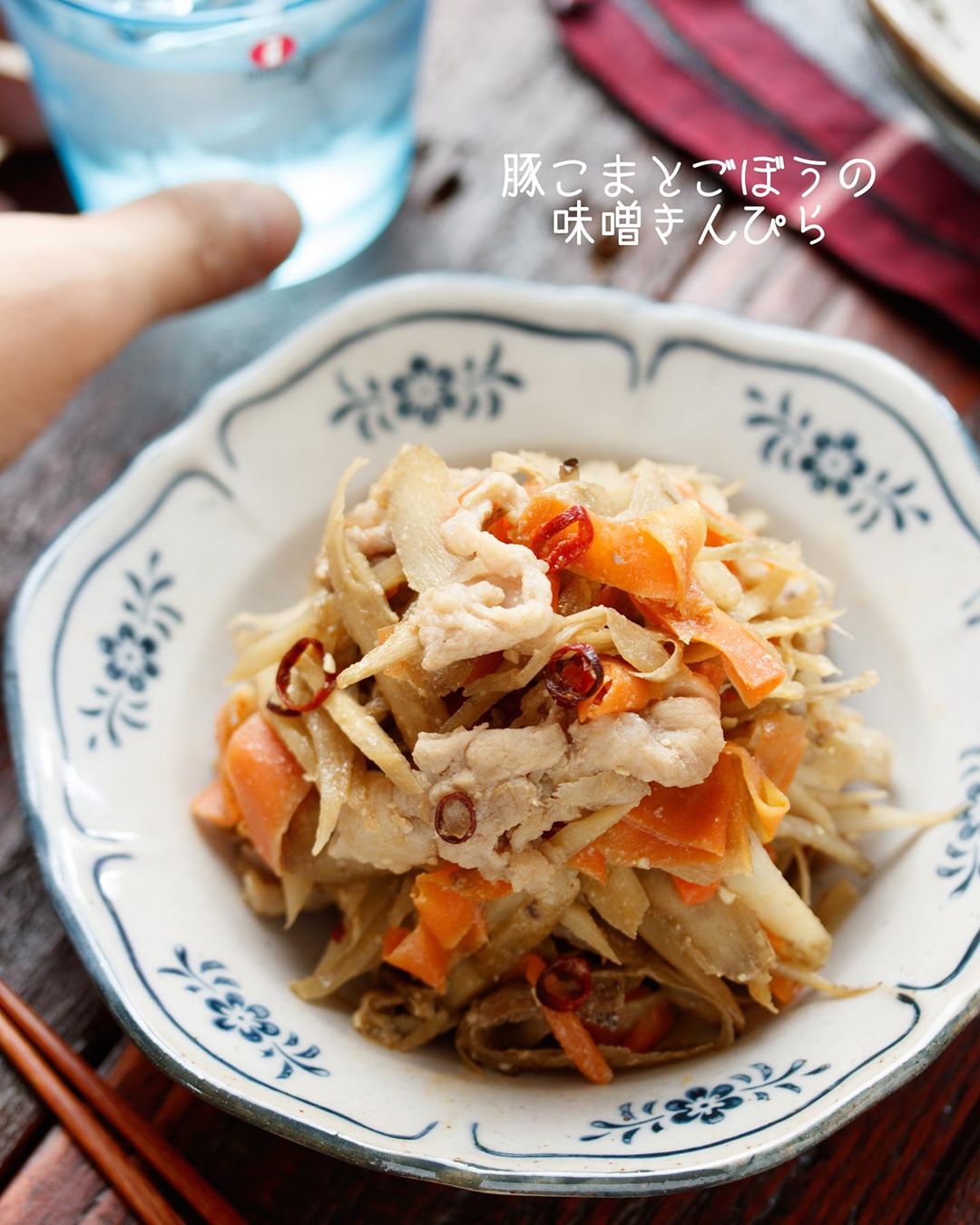 #簡単 #簡単レシピ #レシピ #節約 #時短 #時短レシピ #food #recipe #cooking #料理好きな人と繋がりたい #器好き #器 #写真好き #楽うま #おかず #自分時間 #自分磨き #ライブドアインスタブロガー #作り置き #冷凍保存 #お弁当 #常備菜 #豚こま #豚肉 #ごぼう #にんじん #きんぴら #味噌きんぴら