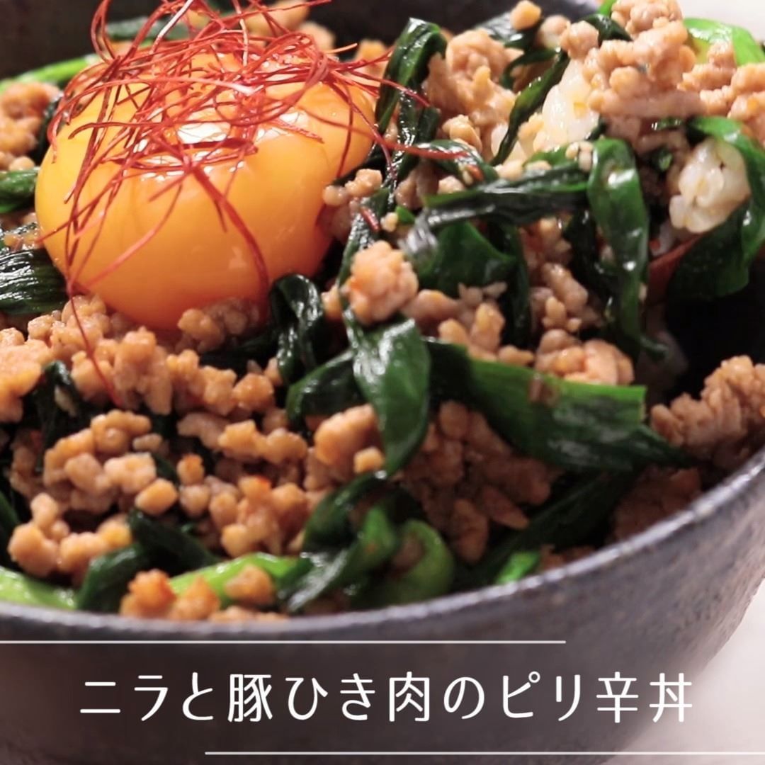 ②『ニラと豚ひき肉のピリ辛丼』