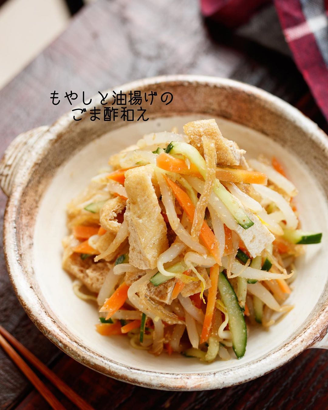 #簡単 #簡単レシピ #レシピ #節約 #時短 #時短レシピ #food #recipe #cooking #料理好きな人と繋がりたい #器好き #器 #写真好き #楽うま #おかず #自分時間 #自分磨き #ライブドアインスタブロガー #もやし #油揚げ #にんじん #きゅうり #寒天 #糸寒天