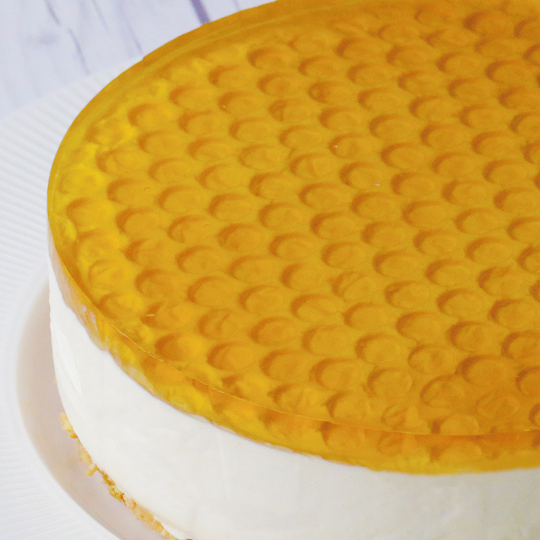 9.ケーキを型から外し、気泡緩衝材をゆっくりと剥がす。仕上げにはちみつをかけたら、完成!