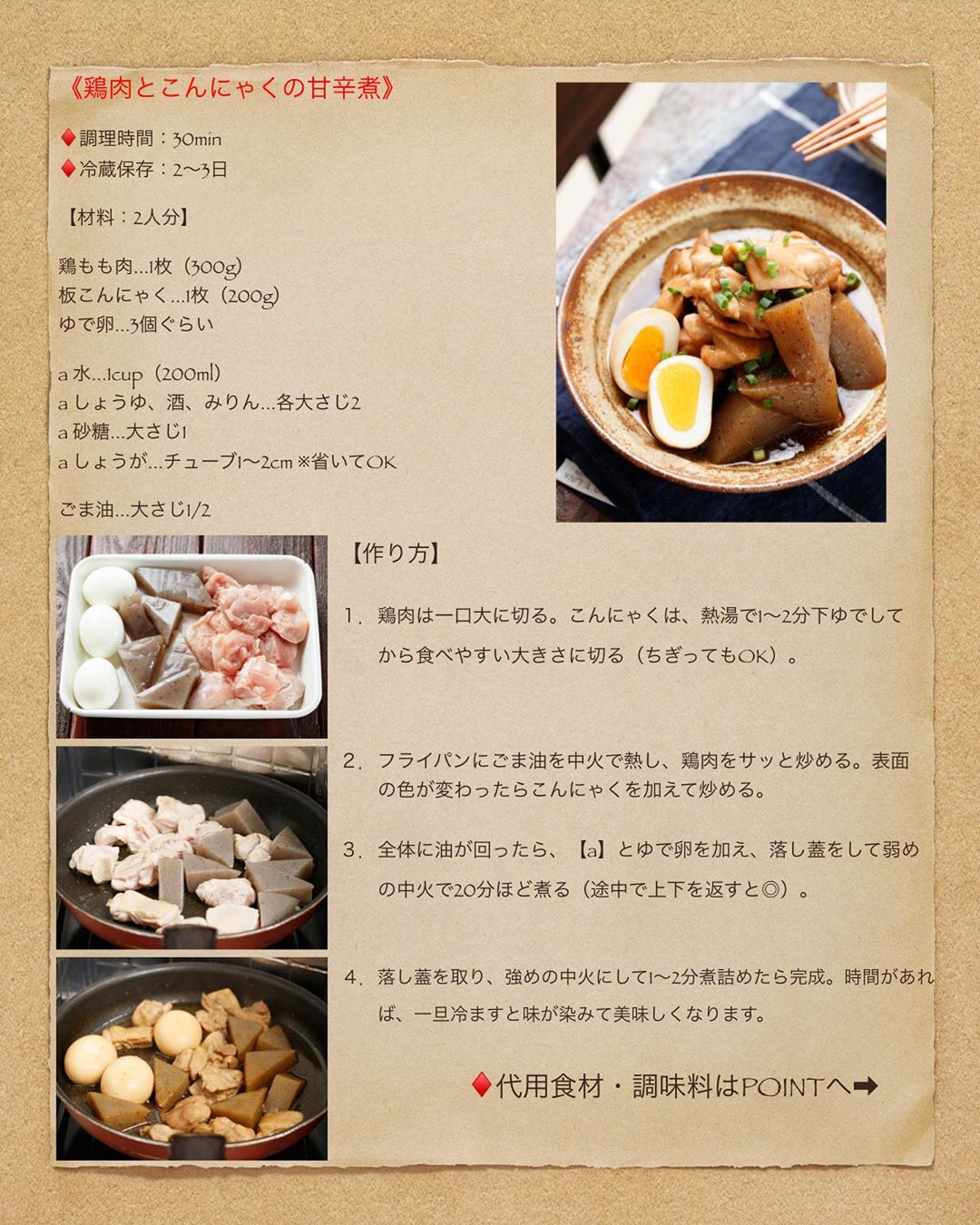 #簡単 #簡単レシピ #レシピ #節約 #時短 #時短レシピ #food #recipe #cooking #料理好きな人と繋がりたい #器好き #器 #写真好き #楽うま #おかず #自分時間 #自分磨き #ライブドアインスタブロガー #鶏肉 #こんにゃく #卵 #甘辛 #余宮隆