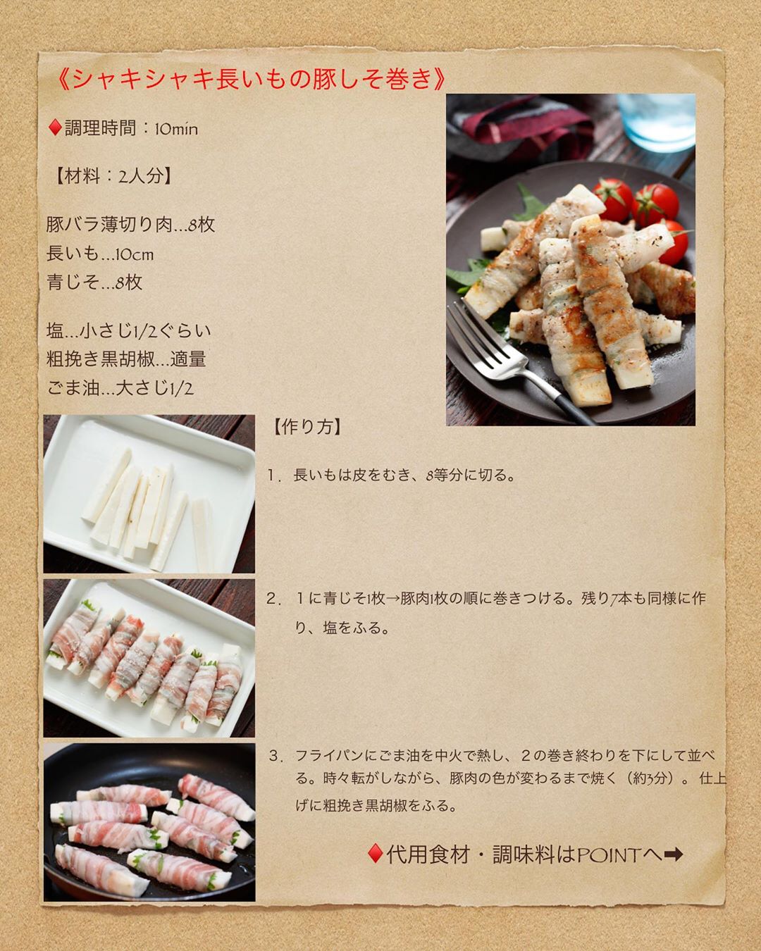 【 #シャキシャキ長いもの豚しそ巻き 】