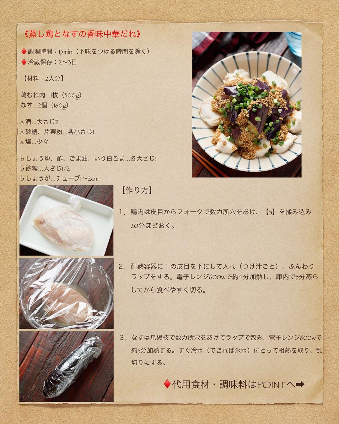 【 #蒸し鶏となすの香味中華だれ 】#作り置き #お弁当 #鶏むね肉 #レンジ #ヘルシー #ダイエット