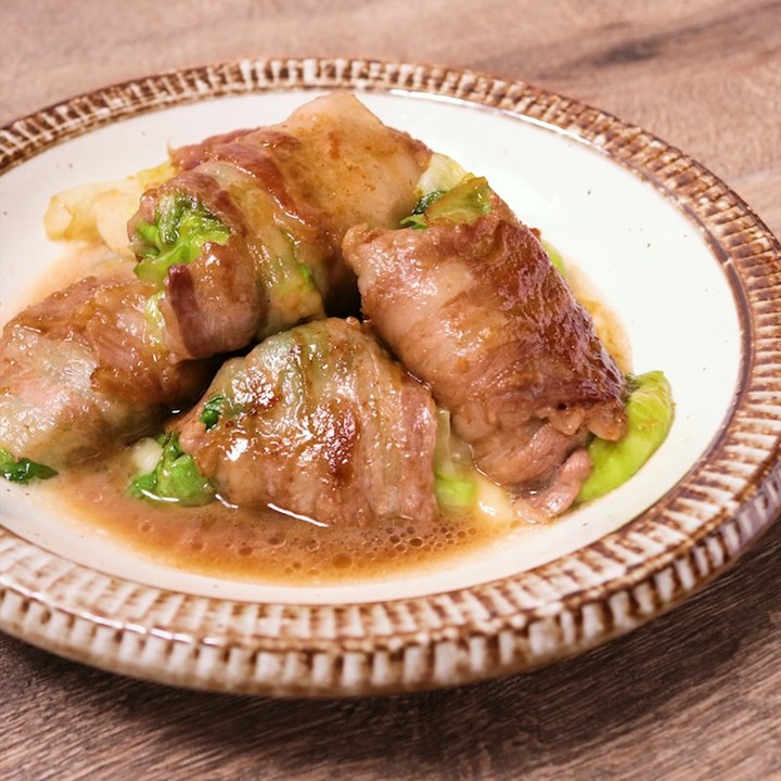 『レタスと豚バラのカマンベール巻き』