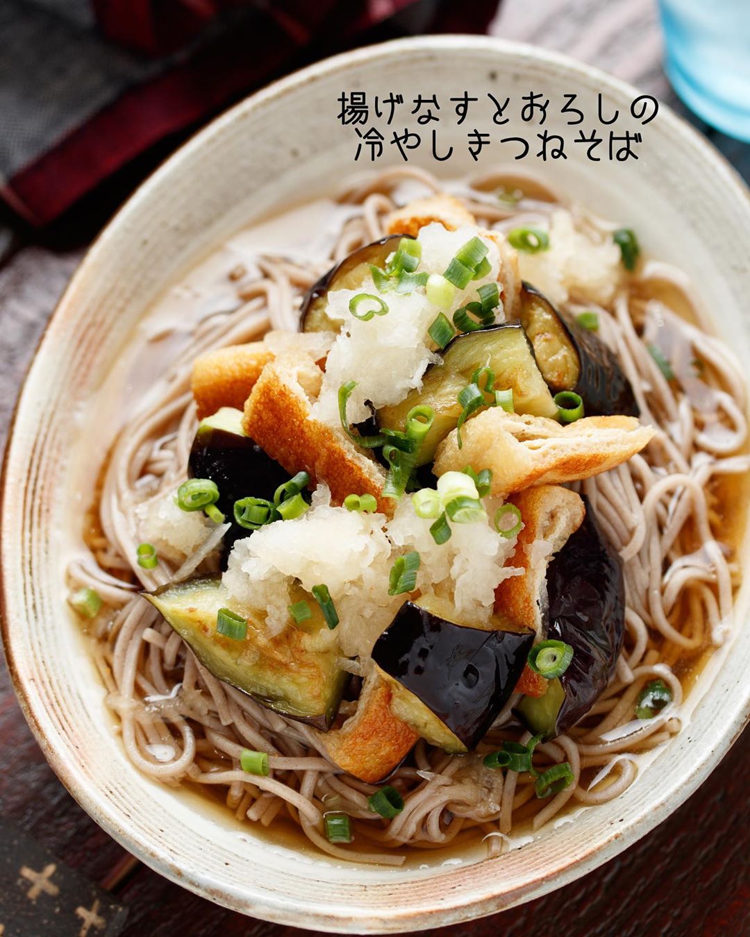 【 #揚げなすとおろしの冷やしきつねそば 】#疲れた胃腸に #ランチ