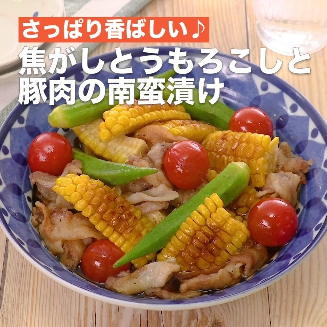 ④<さっぱり香ばしい♪焦がしとうもろこしと豚肉の南蛮漬け>