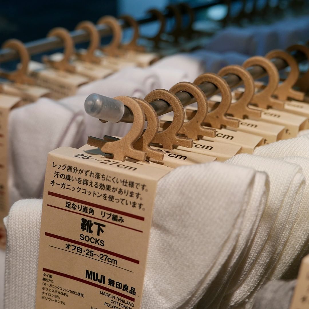 靴下は、くらしの定番アイテムとして、無印良品の中でも販売数の多い商品です。プラスチック削減の取り組みを進めるにあたって、影響が大きいだろうと考え、いち早く陳列用フックの見直しを決めました。
