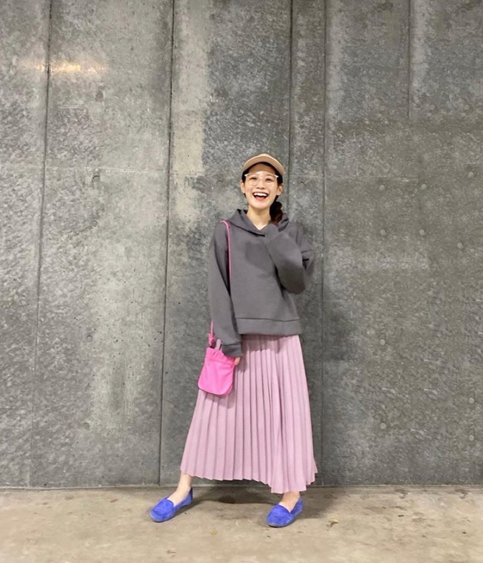 シルエットが絶妙で、今年顔のパーカ✨注目カラーの、グレーチョイスもいい感じ👌ピンクのスカートとの合わせ方も、とっても可愛いですね😘バランスの良いユルっと感が、間違いなし👏是非、チェックしてみてくださいね💁♀️💕