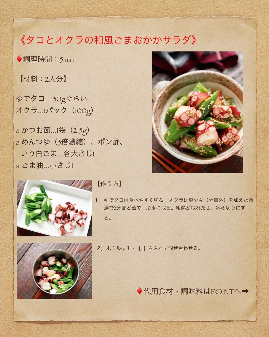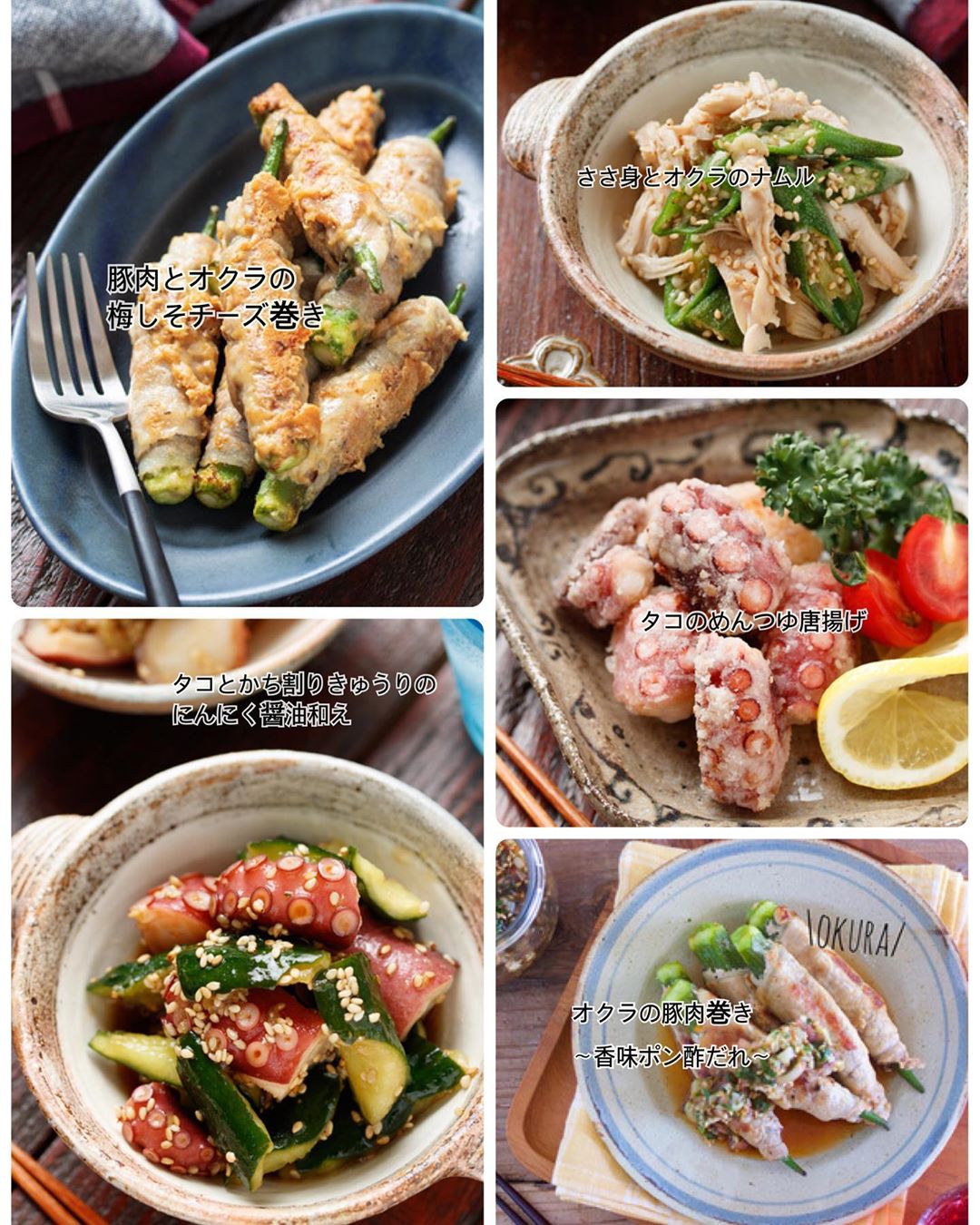 ☘️pic5枚目の『その他のタコ&オクラレシピ』は