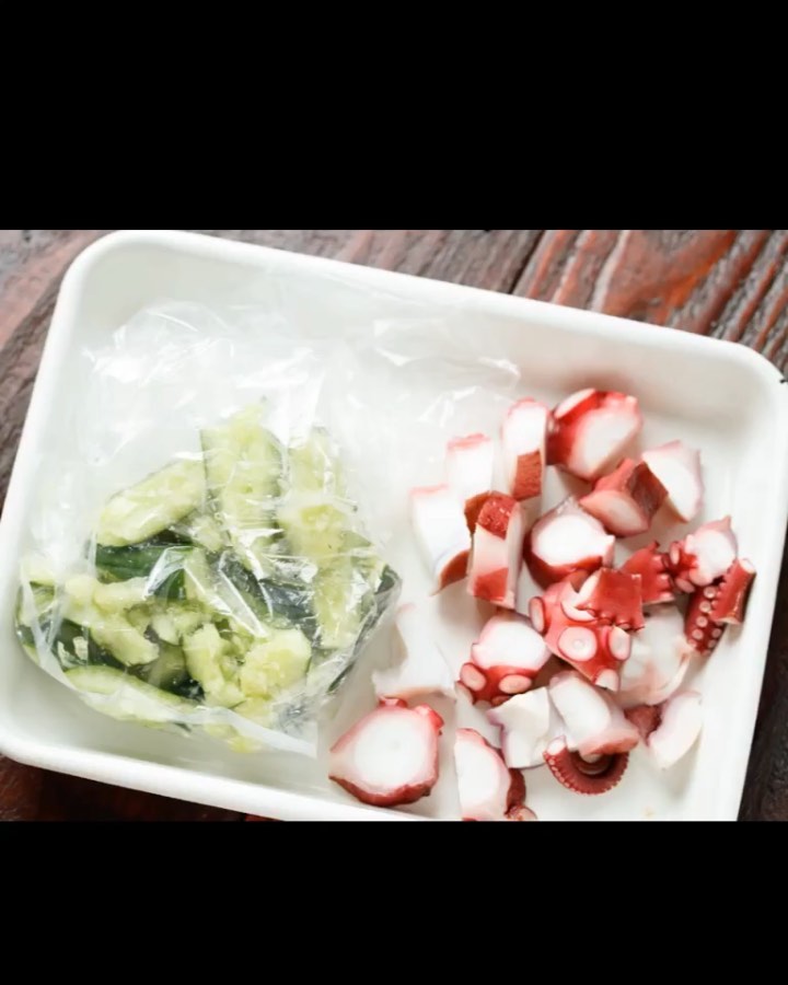 切ったタコと叩いたきゅうりを