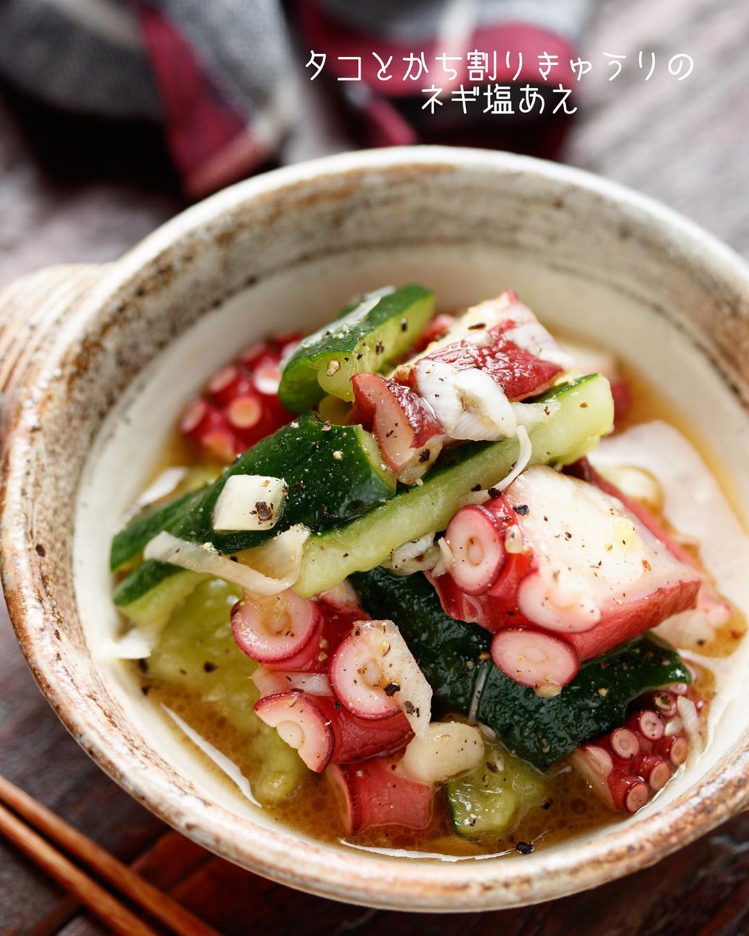 【 #タコとかち割りきゅうりのネギ塩あえ 】