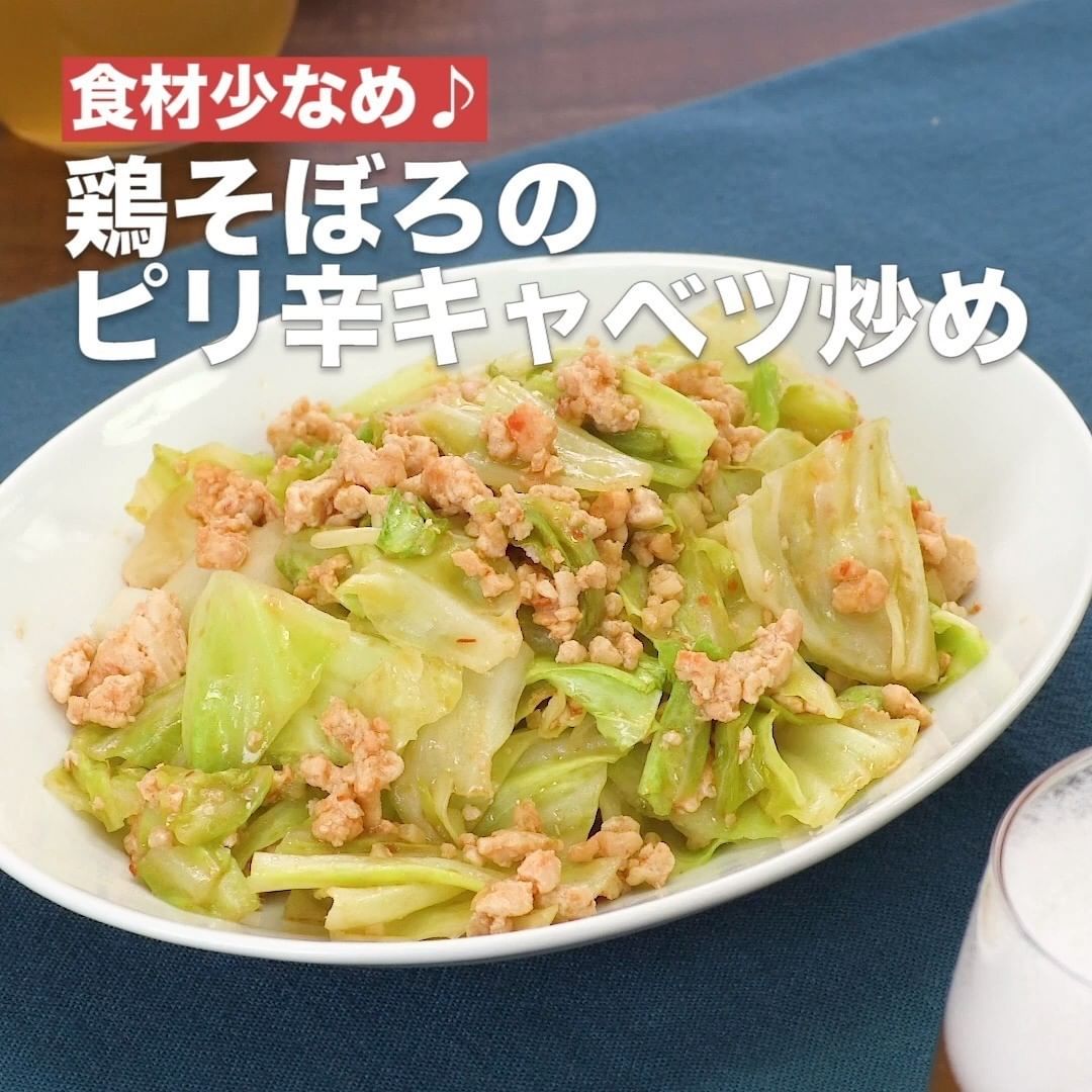 ⑧<少ない食材で♪鶏そぼろのピリ辛キャベツ炒め>