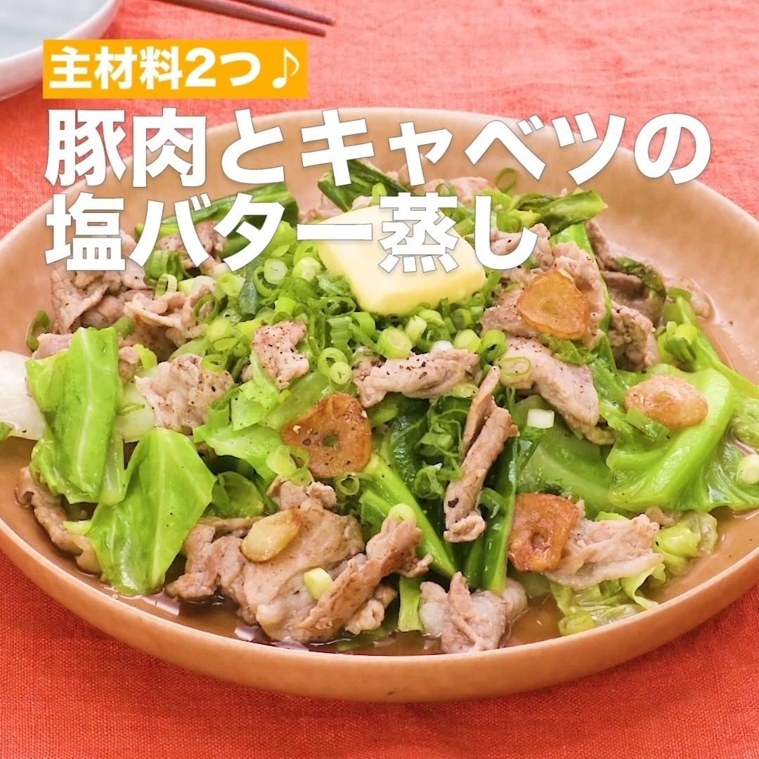 ②<主材料2つ♪豚肉とキャベツの塩バター蒸し>