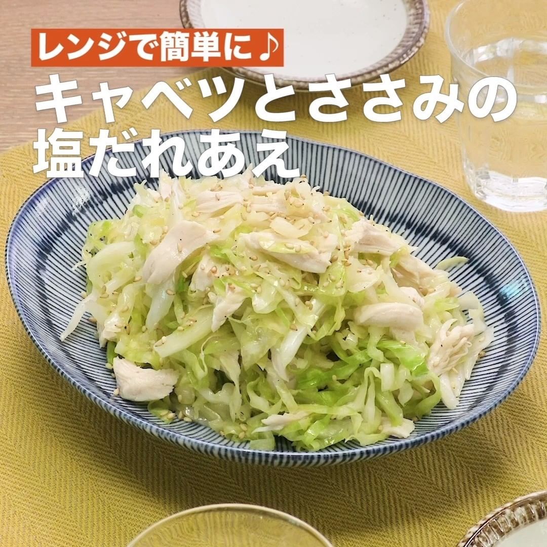 ④<レンジで簡単に♪キャベツとささみの塩だれあえ>
