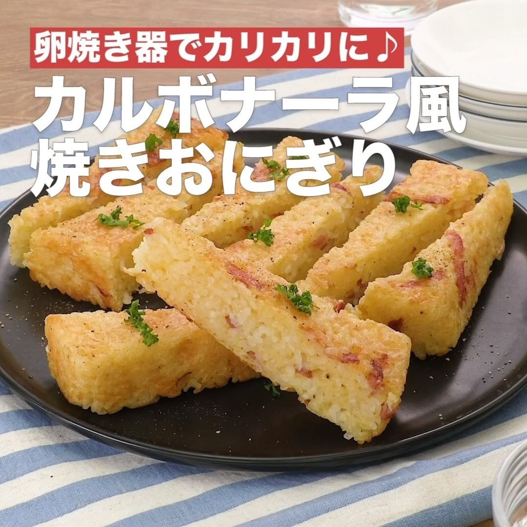 ⑧<卵焼き器でカリカリに♪カルボナーラ風焼きおにぎり>