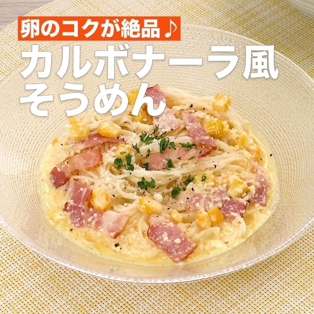 ⑨<卵のコクが絶品♪カルボナーラ風そうめん>