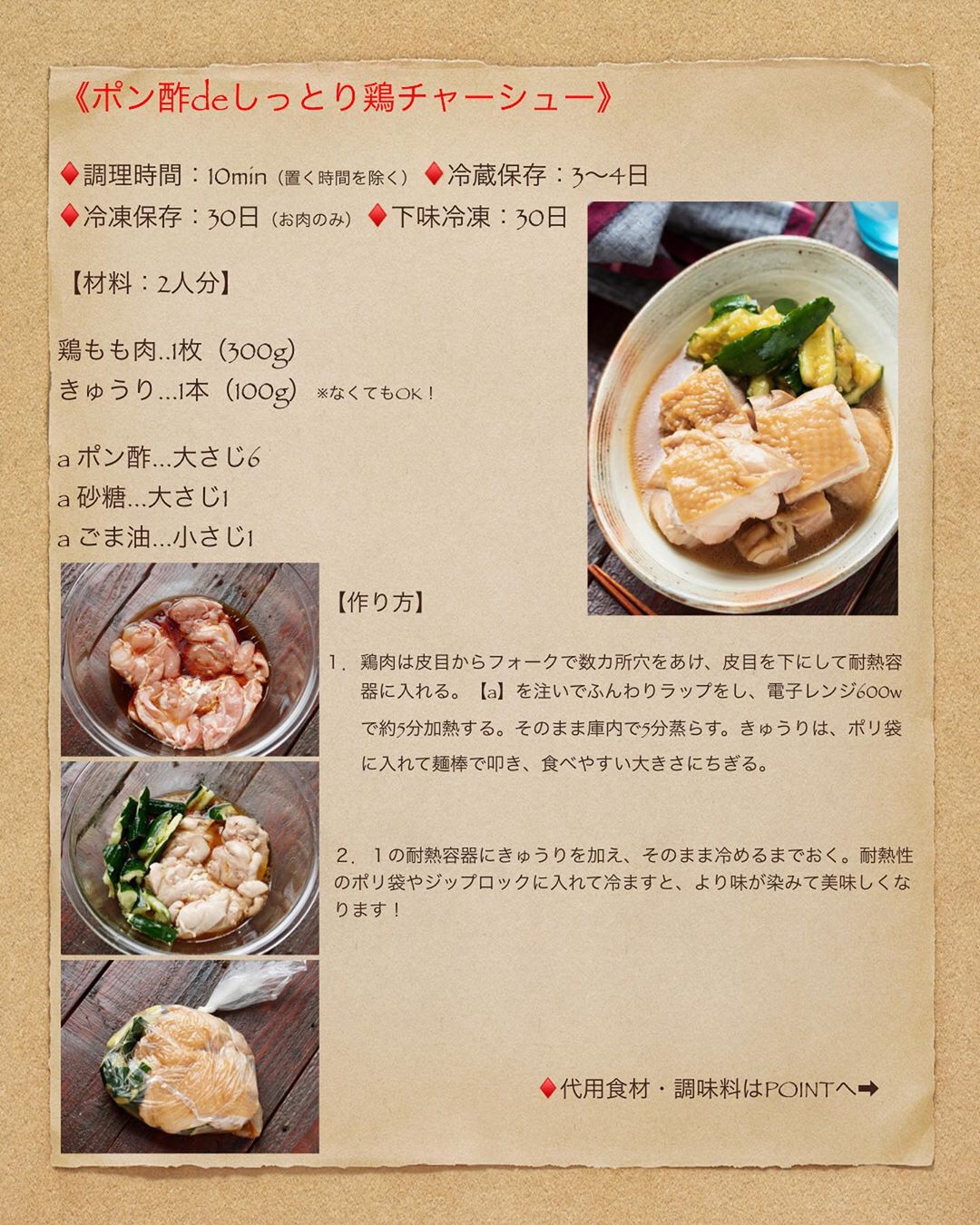 【 #ポン酢deさっぱり鶏チャーシュー 】#作り置き #冷凍保存 #下味冷凍 #お弁当 #電子レンジ #鶏むね肉