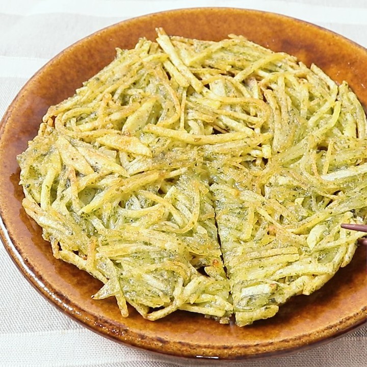 のり塩味がおいしい、ボリュームたっぷりのじゃがいもガレットのご紹介です。のりしおとチーズの組み合わせがとてもおいしい一品ですよ。今晩のおかずのあと一品にいかがでしょうか。この機会にぜひ作ってみてくださいね。