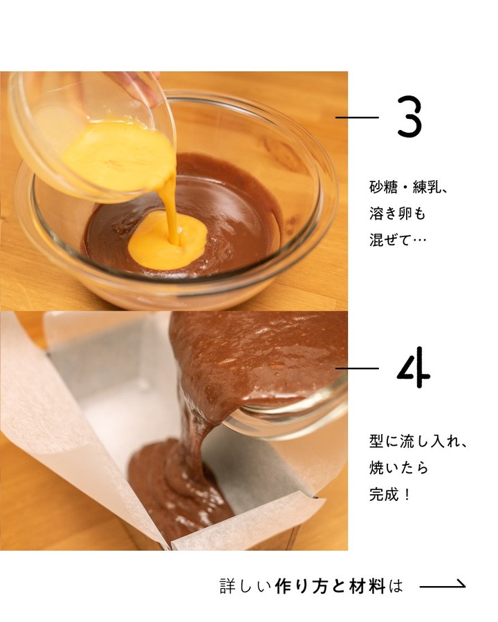 5. 型に流し入れ、170℃のオーブンで火が通るまで25分ほど焼きます。