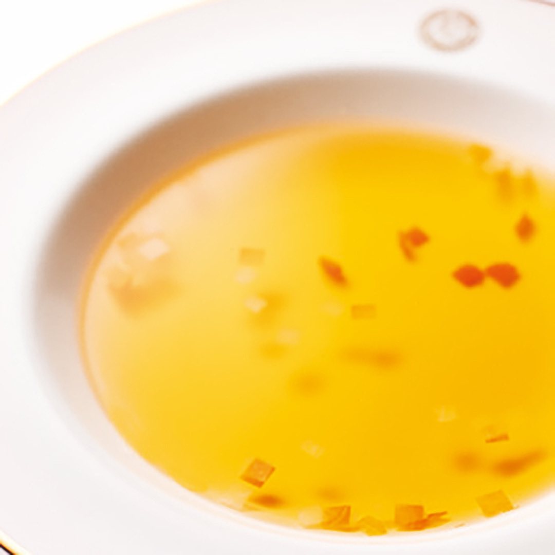 ②牛肉と鶏肉を2日間かけて仕込んで作ったコンソメスープ