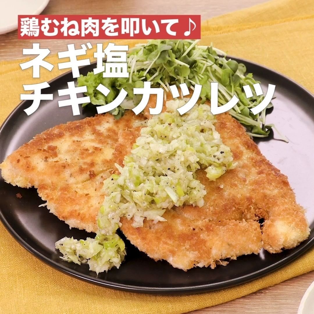 ③<鶏むね肉を叩いて♪ネギ塩チキンカツレツ>
