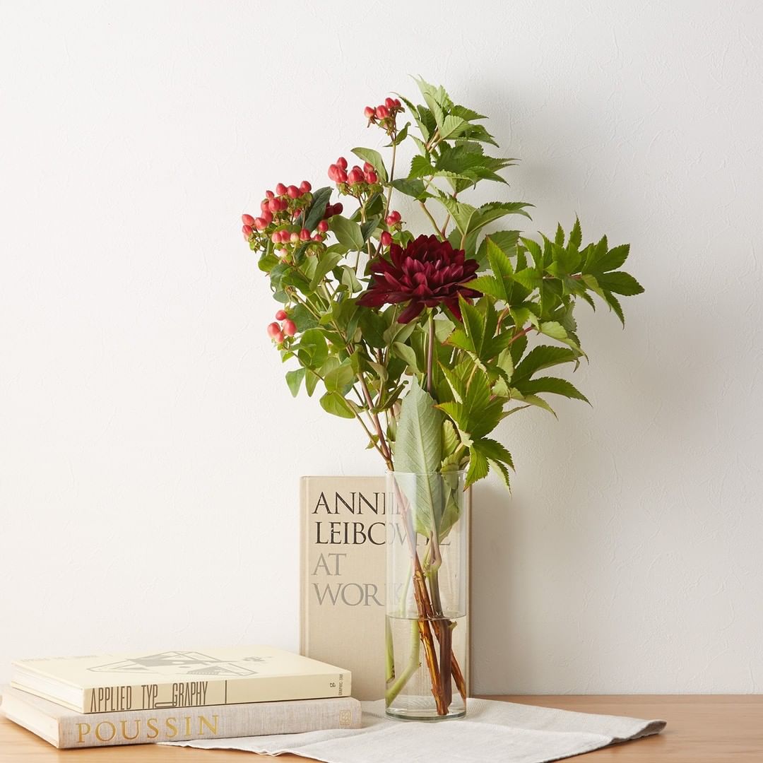 #無印良品 #MUJI #花 #flowers #植物 #花のある暮らし #インテリアグリーン #ダリア #ユーカリ #ヒペリカム #キイチゴ #秋の花 #秋色 #autumn
